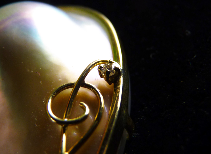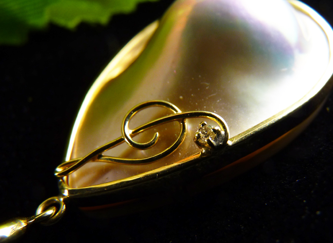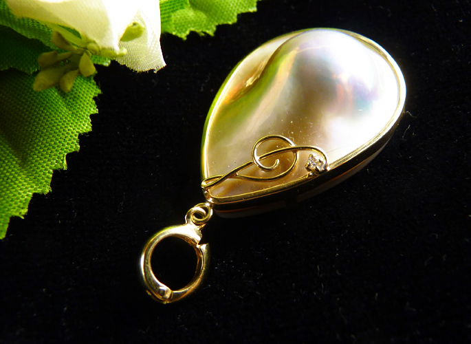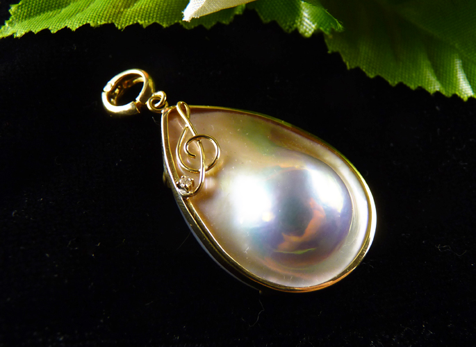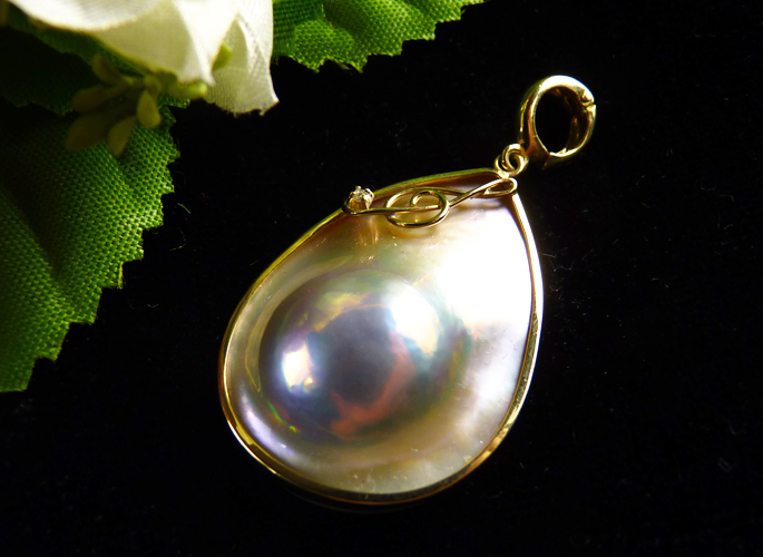 品質のいいマベパールをペアシェイプ型にした元木恵理のオリジナル品。