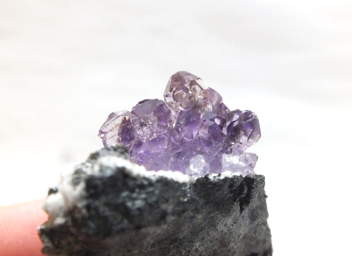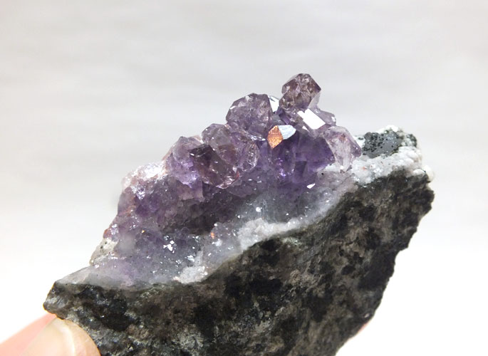 美しいアメジストの結晶の他、スモーキーな色合いも混ざり合い、とても幻想的です。