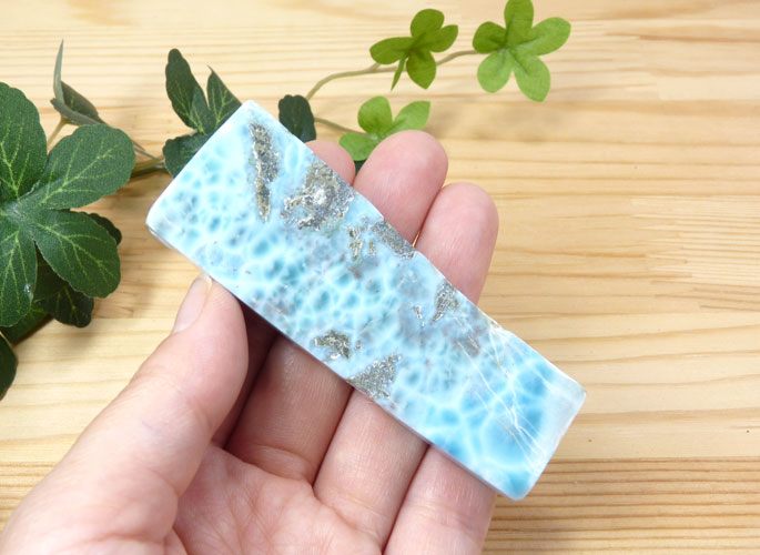 こちらのラリマーは、原石の風合いを生かし、プレート状に研磨されたお品。 ラリマーらしい発色のいいブルーの模様がとても美しいお品です。